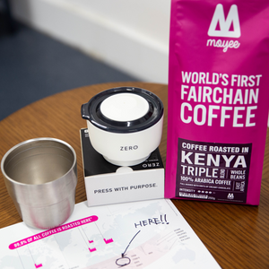 ZeroPress coffee press and a 250g bag of Fairchain coffee of your choice.